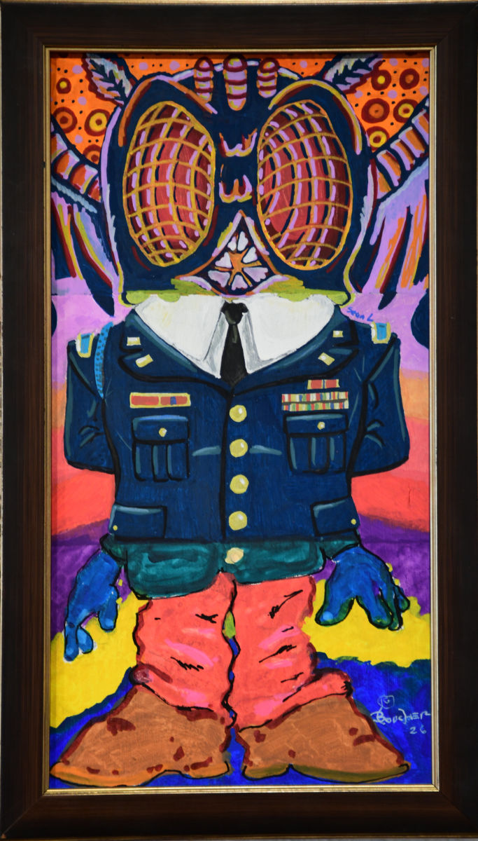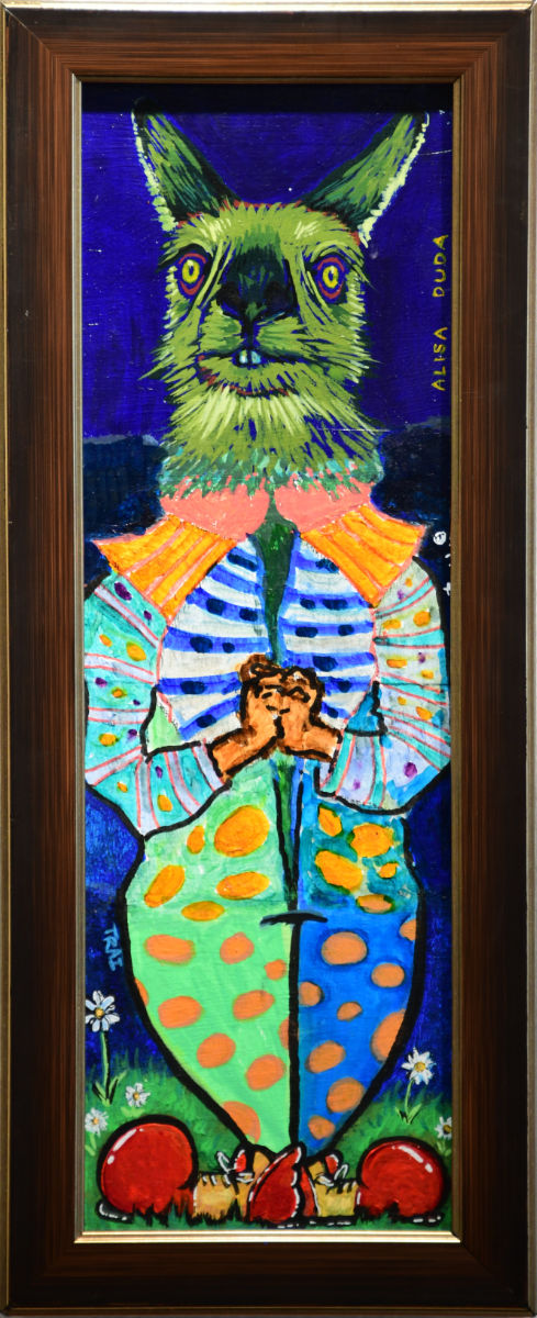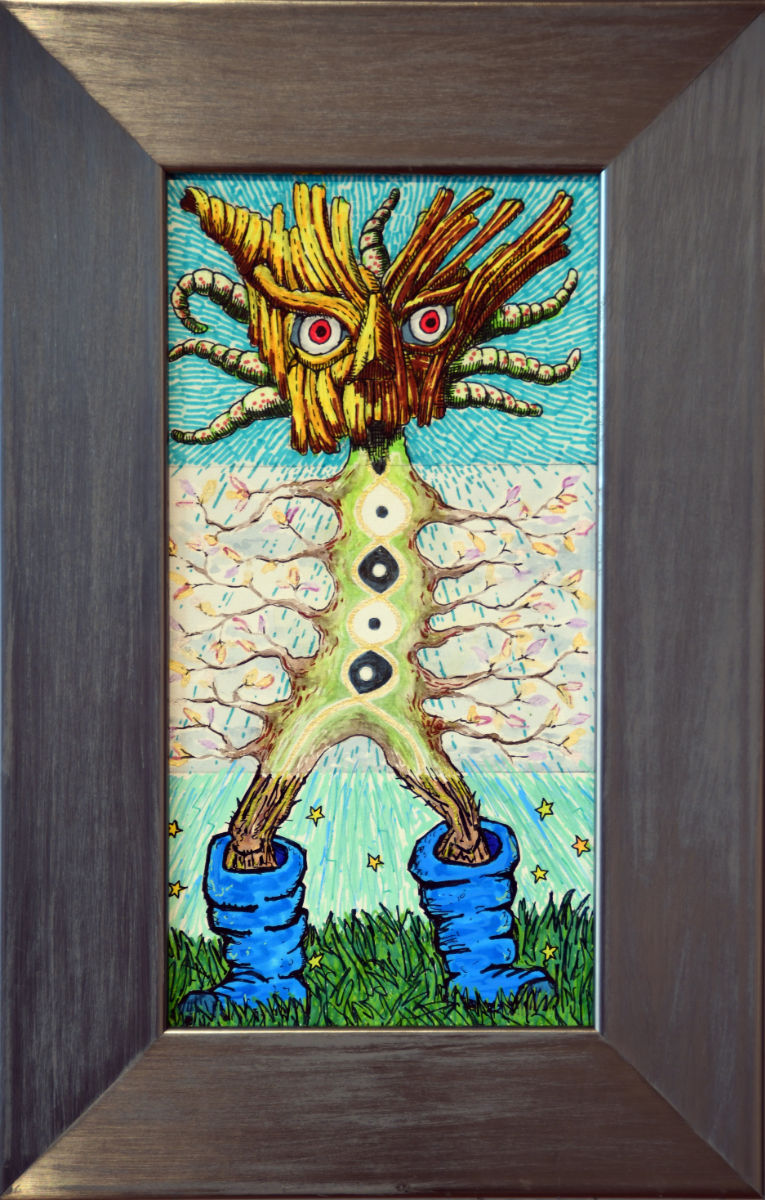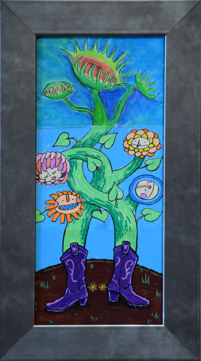 Artists have been paired up in groups of three to work on a single piece of art. The final composition for all pieces will be a figure (human or other). The artists are taking turns with the first artist creating the head and shoulders, then covering up all but the lowest ¼ inch of the piece of art. The second artist will work from only the exposed ¼ inch to create the torso, and cover up all but the next ¼ inch. The final artist will create the legs based only on the exposed ¼ inch of the torso. The artists will not know who their collaborators are until the final pieces are unveiled at the opening reception.